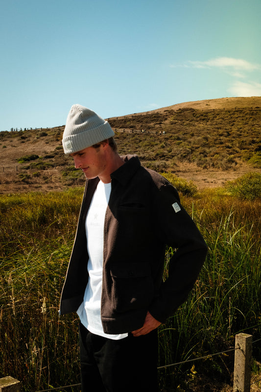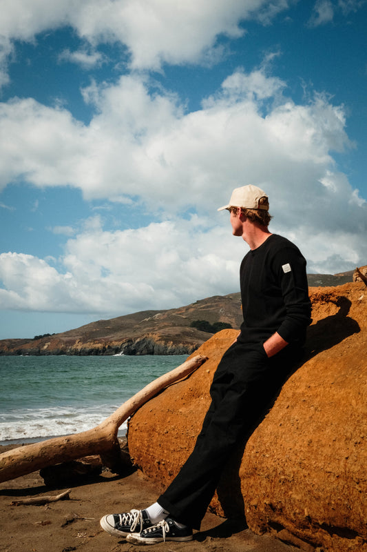 Our Winter Collection, Pacific Landing, marks the final stop on our westward journey... a return to the Bay and the feeling of home it carries. Inspired by foggy mornings, golden hillsides, and evenings where city lights meet the Pacific, it captures the quiet beauty of a California winter. Each piece is made to move with you... layered, lived in, and timeless. Photographed alongside friends on the coast we grew up on, this collection is a study of gratitude, place, and the spirit of coming home.